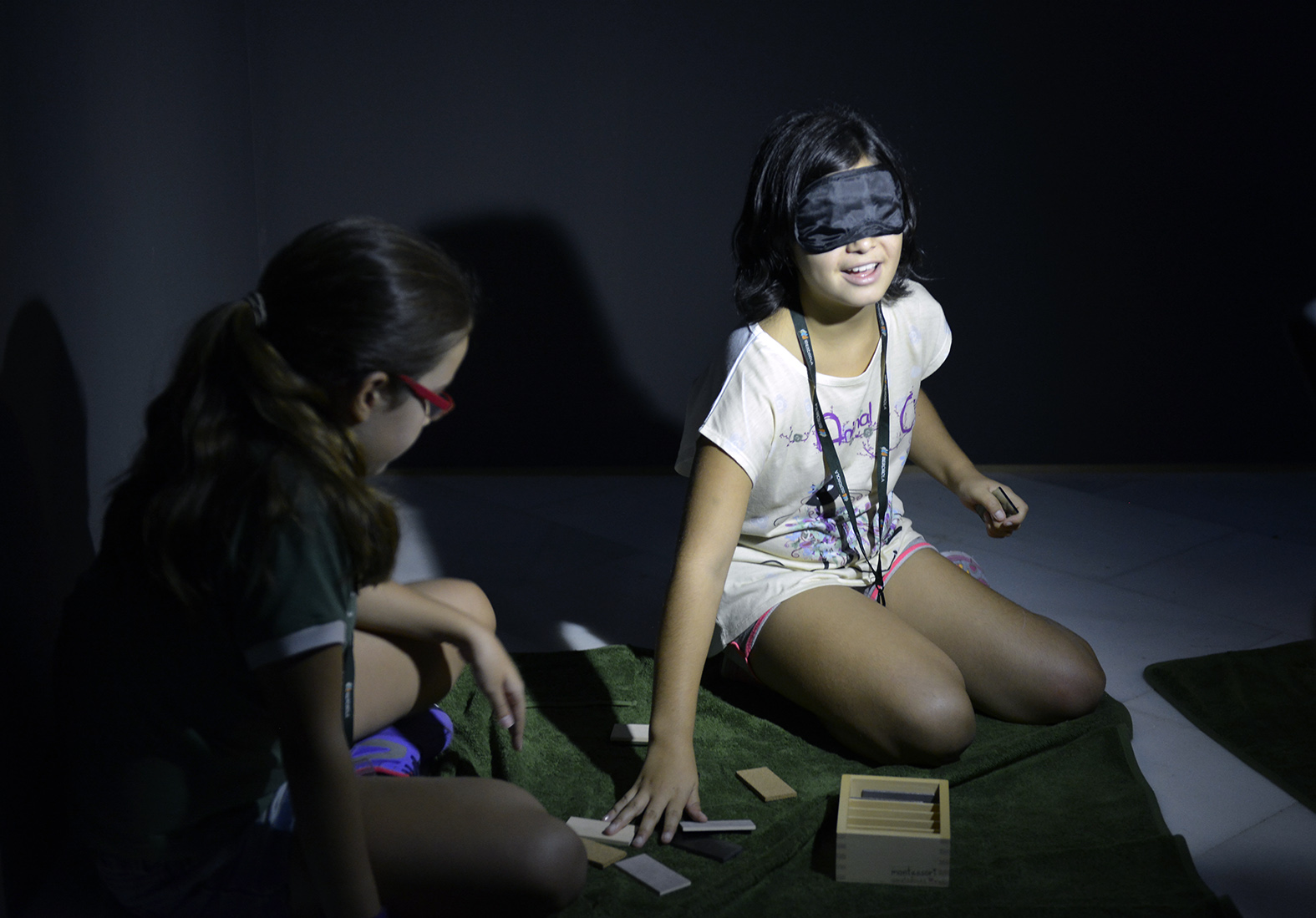 La dinámica de los talleres consistía en trabajar con grupos de 15 personas máximo durante una hora y media, tiempo en el que recorríamos la exposición deteniéndonos en unas obras determinadas en las que realizábamos una serie de ejercicios con materiales que se caracterizaban por el hecho de aislar y potenciar los sentidos. Los materiales empleados en los ejercicios sensoriales provenían de las siguientes pedagogías alternativas: